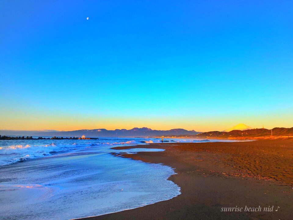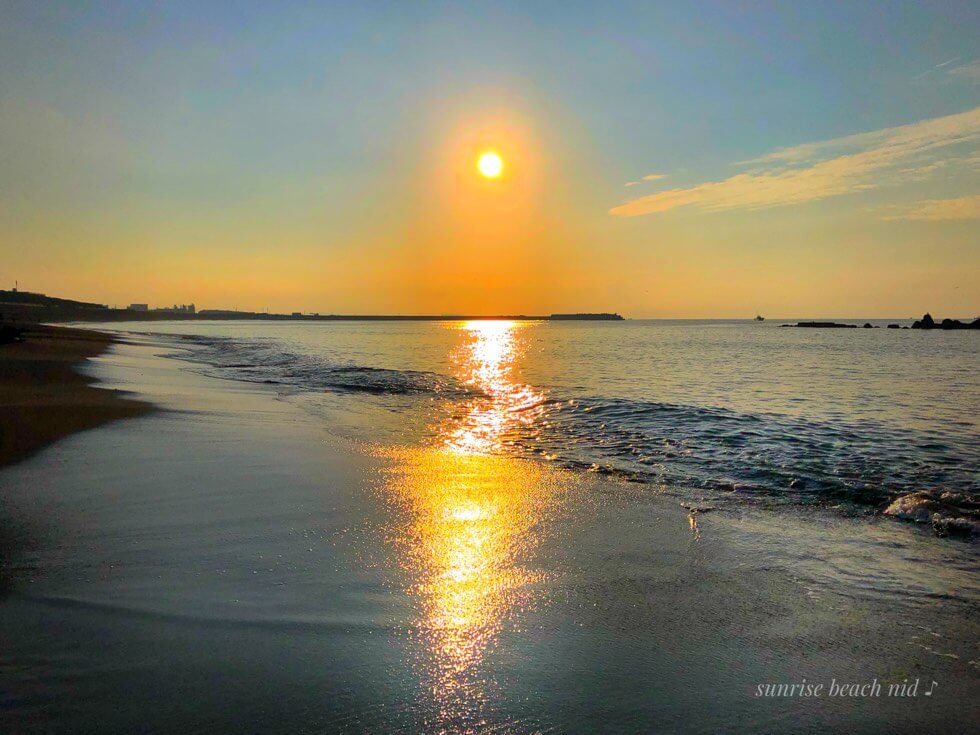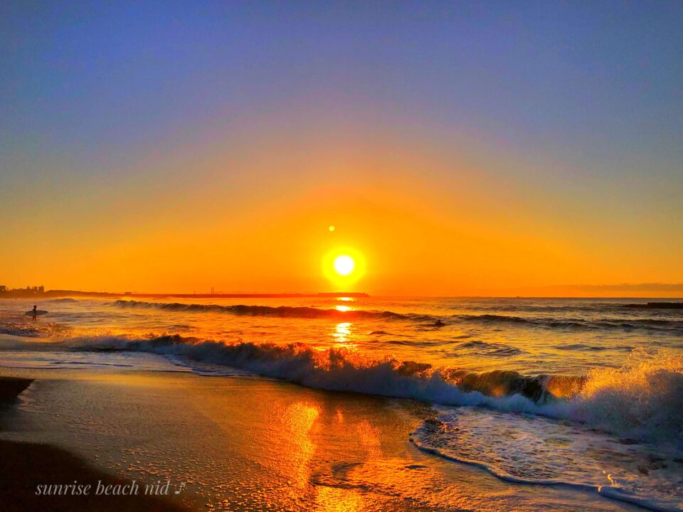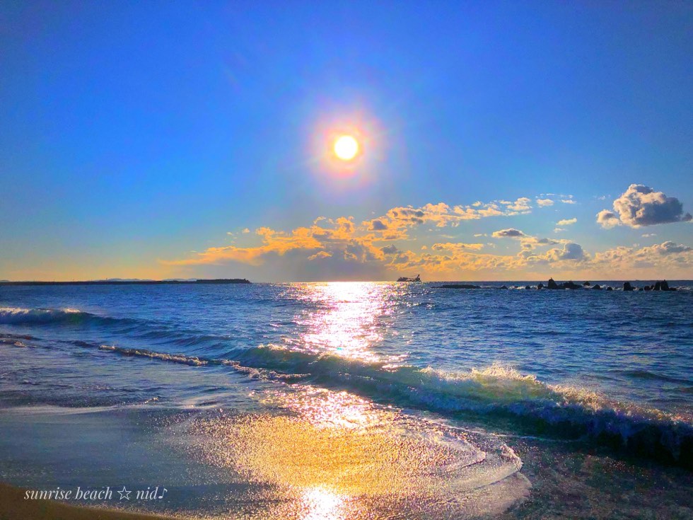 昇る朝日は黄金イエローの光を放ち力強い波達の浄化をサポート🌊
