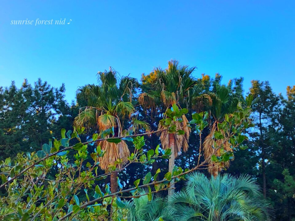 なんでも…2月最初のヤシの木ブラザーズのバックヤード。カラフルな空が木々とアートコラボです。