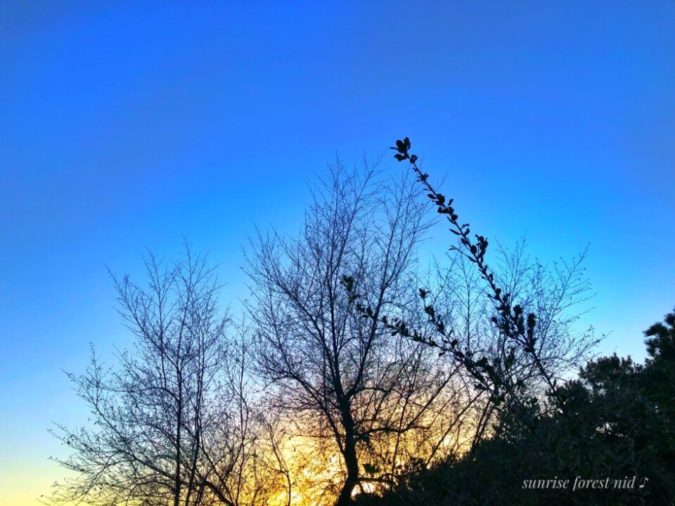 木々たちは昇る朝日のエナジーで寒い冬を超え元気です。